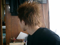 | トサカ | 男の大きさはトサカ(髪の毛)の大きさ・奇抜さで決まると勝手に思っている。 基本的に後ろが「ワシャーっ!」となるのが好き♪あと襟足は長めがGOOOOOOD! 一回だけモヒカンにしたことあり。 しかし今は就職活動することも予定として考え、黒髪の長めのツンツン。(下ろしても違和感がないように長め) |