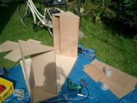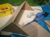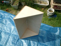 今度は三角形の板の違う2辺に足となる板を取り付けます。 |
