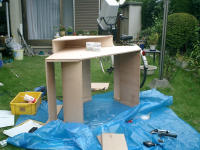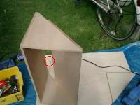 今回は余った木に足を付けただけ。配線を通せるように直角の部分に三角の穴を開けました。 |