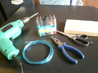 | 1 | 必要な道具 ドリル ドライバー(+) ラジオペンチ はさみ キリor千枚通し 針金 使わない板 |