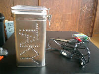 | 補足説明 | 電球セットの説明があいまいですが、この照明を作る時にはソケット+コード、スイッチ+コンセントまで作っておいて、缶にソケットを入れる所(手順9)まで出来たらスイッチと接続してください。 |