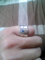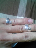普通に2つ重ねたパターン。反対側には別の文字が彫ってあるので、それも気分次第で変更可能です。 |