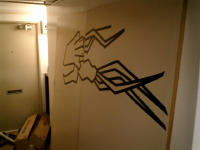 取り払った襖に何か描いてといわれ、黒いテープで適当に描いてみました。(まだ制作途中) 最近仕上げた原付にちなんでエイリアンっぽいものを描いてみました。 |