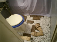 トイレは庭園用の石とレンガを合わせてクールに! |