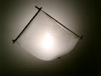 この部屋は依頼主の”和み系・和+アジアンテイストな感じ”という考えのもと制作しました。 天井のライトは、黒竹と障子紙でシンプルにかつ柔らかい感じで作ってみました。作り方は超簡単です。 |