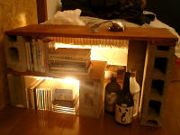 着々と作業が進んできました。今回はベット周りにモノを置くスペースが欲しいということなので、定番のブロックと板を使った簡単な棚を作りました。 |