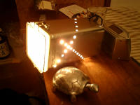 間接照明作りました。 置き方によって明るさが調節出来るように、穴の大きさを側面によって変えてます。 材料は300円ショップで購入した、パスタ入れ。 |